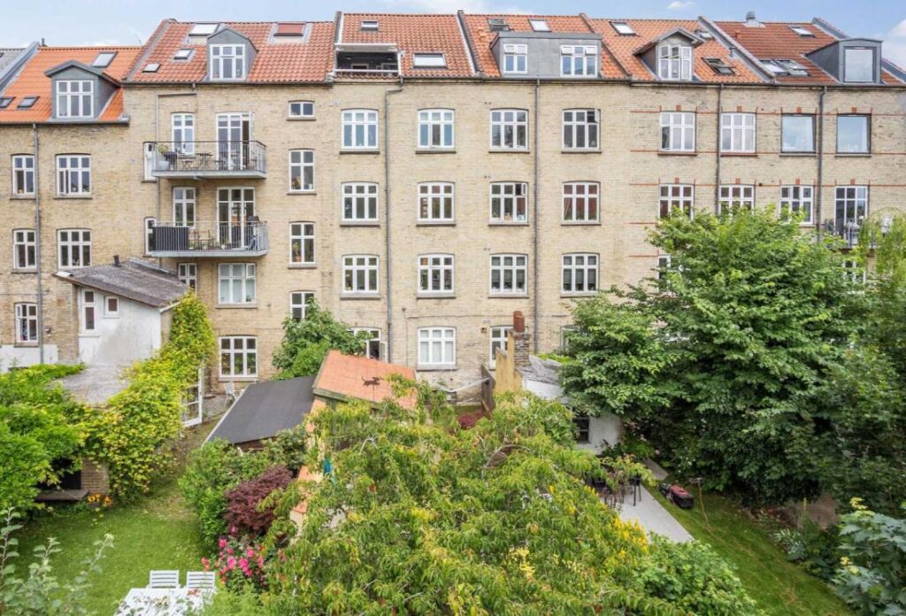 Til ejendommen hører en vestvendt have med fælles terrasse og baghus med plads til haveudstyr. I kælderen er der plads til cykler, vaskerum samt depotrum til lejlighederne.